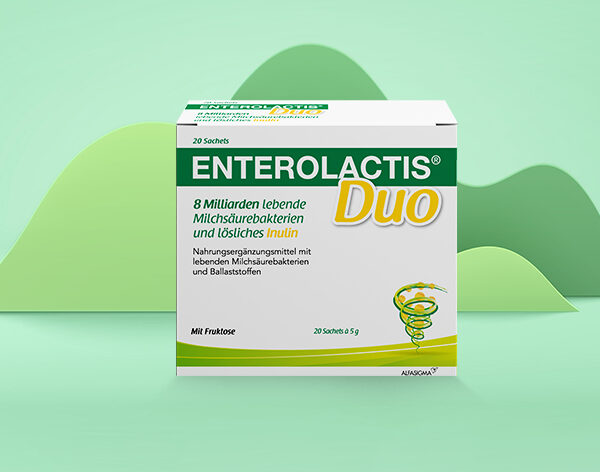 Mit ENTEROLACTIS Duo kannst du deine Darmgesundheit aktiv ergänzen und dein Darmmikrobiom optimal versorgen.